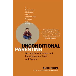 Last night I started reading Unconditional Parenting by Alfie Kohn. It’s been sat by my bed unopened for two years, since I was pregnant with DS and DD looked like she was about to embark on the ‘terrible twos’, and I ordered a rash of parenting books to join the ranks of baby books on my shelf.