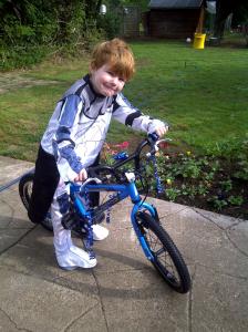 He’s a real mummy’s boy at the moment, although daddy will come into his own when he falls in love with balls of all shapes and sizes, I’m sure. He’s already got a killer sense of what to do with a ball: he can drop-kick, and kick long and on target. DH taught him to ride his grown-up bike with no stabilisers this summer, and he looks delicious wobbling along with his massive helmet on his little boncey head. He has massive hands – something tells me he’s going to be a tall boy, and once we get round to Sunday morning rugby sessions, no-one will be messing with this ginger whinger.