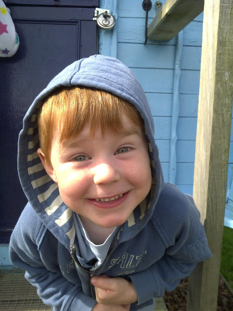 He’s a tall, skinny little thing – his trousers are either too short or the right length but falling down around his tiny hips and peachy bottom. He has an acute sense of the absurd, and (obviously) a penchant for toilet humour (saying ‘poo’ can literally make him cry with laughter until he can’t breathe). He has a real twinkle in his eye and a great imagination. He makes up imaginary characters with extraordinary names, two of the most popular currently being the superheroesque ‘Acival’ and the more slapstick-sounding ‘Eldon Bun’. He describes really cool things like torches and doing a forward roll as ‘awesome’. He loves soft play, and theme parks, and playing with small Playmobil/Happyland figures he calls ‘persons’.
